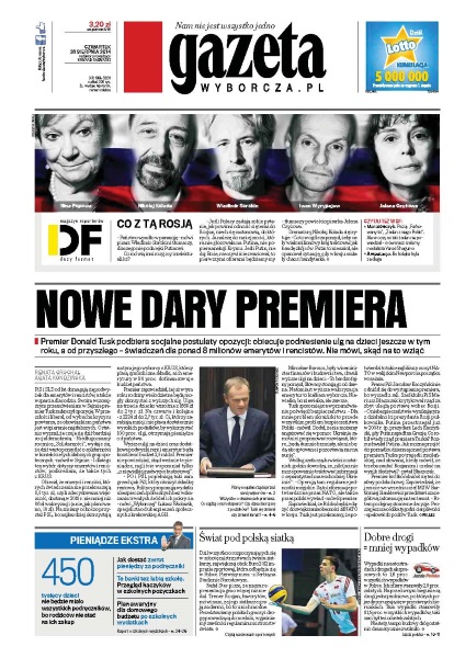 Nowe dary premiera – premier Donald Tusk podbiera socjalne postulaty opozycji: obiecuje podniesienie ulg na dzieci jeszcze w tym roku, a od przyszłego – świadczeń dla ponad 8 milionów emerytów i rencistów, nie mówi, skąd na to wziąć; świat pod polską siatką – dziś wszystko o rozpoczynających się w sobotę mistrzostwach świata siatkarzy, największej obok Euro 2012 imprezie sportowej, która odbędzie się w Polsce; dobre drogi to mniej wypadków – wypadki na autostradach i drogach ekspresowych to 1,6 procenta wszystkich wypadków w Polsce; Janicki już nie chce być prezydentem Wrocławia – wbrew zapowiedziom były wiceprezydent Wrocławia Michał Janicki, dziś skonfliktowany z Rafałem Dutkiewiczem, nie wystartuje w jesiennych wyborach gospodarza stolicy Dolnego Śląska.