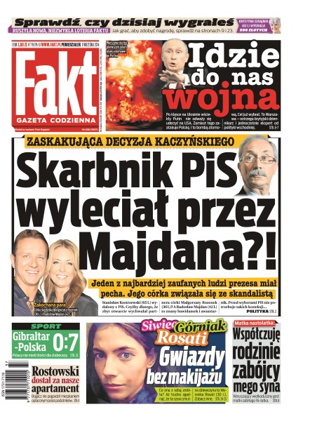 Zaskakująca decyzja Kaczyńskiego – czy skarbnik PiS wyleciał przez Majdana; po klęsce na Ukrainie wściekły Putin nie odważy się uderzyć na USA – zamiast tego zaatakuje Polskę; Rostowski dostał za nasze apartament; Gibraltar – Polska 0:7 – Polacy nie mieli litości dla słabeuszy.