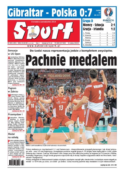 Polscy siatkarze wygrali grupę A, teraz jadą do Łodzi gdzie zmierzą się z Iranem, Francą, Włochami i USA; polscy piłkarze pokonali reprezentację Gibraltaru 7:0; wielkie sensacje na US Open; pogram w Zabrzu – Puchar EHF.