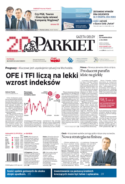 Największy w Polsce newsroom gospodarczy zbiera, analizuje i zgłębia dla Państwa najważniejsze informacje ze świata finansów. Codzienne wydanie „Parkietu”, sześć dni w tygodniu, to kilkadziesiąt artykułów o emitentach, instytucjach finansowych, gospodarce. To również opinie, felietony i wywiady z najważniejszymi ludźmi krajowej i globalnej finansjery.