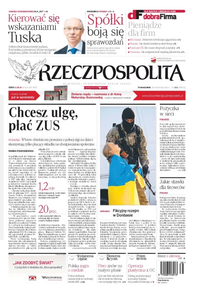 Chcesz ulgę, płać ZUS – wbrew obietnicom premiera z pełnej ulgi na dzieci skorzystają tylko płacący składki na ubezpieczenia społeczne; spółki boją się sprawozdań – tylko połowa spółek regularnie składa roczne sprawozdania finansowe do Krajowego Rejestru Sądowego; fikcyjny rozejm w Donbasie – rozejm w Donbasie jest coraz bardziej kruchy – wokół Doniecka trwają starcia, szczególnie zajadłe na miejscowym lotnisku, bronionym przez ukraińskich żołnierzy; Polska zagra o medale – polscy siatkarze awansowali do czołowej szóstki MŚ; operacja plastyczna z OC – zabieg przywracający normalny wygląd dla poszkodowanego.