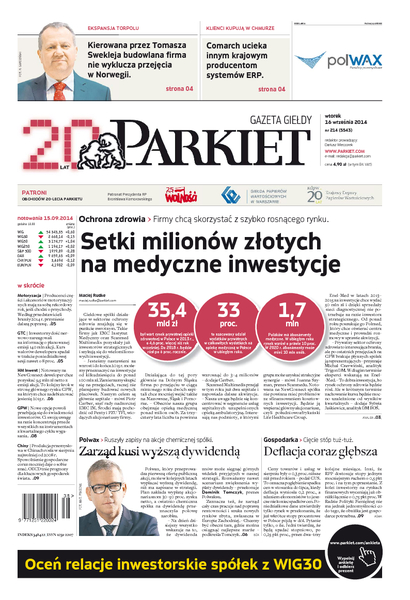 Największy w Polsce newsroom gospodarczy zbiera, analizuje i zgłębia dla Państwa najważniejsze informacje ze świata finansów. Codzienne wydanie „Parkietu”, sześć dni w tygodniu, to kilkadziesiąt artykułów o emitentach, instytucjach finansowych, gospodarce. To również opinie, felietony i wywiady z najważniejszymi ludźmi krajowej i globalnej finansjery.