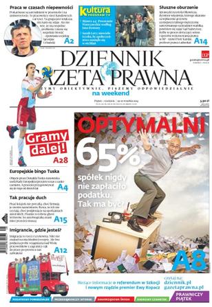 Dziennik Gazeta Prawna – codziennie obiektywne i rzetelne informacje z kraju i ze świata. Piszemy o tym, co dziś ważne i odpowiadamy na Wasze pytania – szczególnie te związane z obecnymi wyzwaniami tj. pandemia, praca zdalna. Na bieżąco wyjaśniamy zmieniające się przepisy. Wspieramy się wyjaśnieniami ministerstw i urzędów. Pomagamy unikać błędów i ostrzegamy, jakie są kary. Ponadto w każdy piątek specjalne magazynowe wydanie Dziennika Gazety Prawnej w całości z tekstami społeczno-ekonomicznymi.