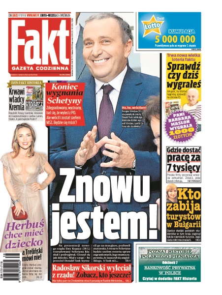 Znowu jestem! – koniec wygnania Schetyny – zdegradowany, wycinany, bał się, że wyleci z PO, ale wrócił i został szefem MSZ, czy będzie się mścić; Edyta Herbuś chce mieć dziecko, a Treliński mówi nie; Radosław Sikorski wyleciał z rządu, zobacz, kto jeszcze – nie tylko pan na Chobielinie stracił posadę w Radzie Ministrów; gdzie dostać pracę za 7 tysięcy – polskie firmy zaczynają wreszcie zatrudniać – zobacz, jakie stawki oferują; kto zabija turystów w Bułgarii – oprócz dwójki polskich studentów w tym kraju zaginął także niemiecki turysta, jego ciała nikt nie znalazł; krwawi władcy Kremla – rządzili Rosją bardziej krwawo niż najokrutniejsi z carów – Lenin, Stalin, a jaki będzie Putin.