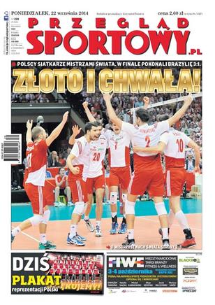 Polscy siatkarze mistrzami świata po zwycięstwie w finale 3:1 nad Brazylią; portret Mariusza Wlazłego, który został wybrany najlepszym zawodnikiem mistrzostw; skandal na meczu żużlowym w Gorzowie; Formuła 1: bezradny Nico Rosberg z garażu patrzył, jak Lewis Hamilton wygrywa w Singapurze i zostaje liderem MŚ; Michał Kwiatkowski z kolegami z Omega Pharma-Quick Step wywalczył brązowy medal mistrzostw świata; mistrz Polski pokazał swoją moc: Legia zwyciężyła w Krakowie Wisłę 3:0.