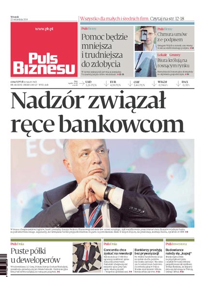 Nadzór związał ręce bankowcom i zakazał tzw. screen crapingu, czyli weryfikowania przez internet stanu finansów w jednym banku za pośrednictwem innego; puste półki u deweloperów: wrocławskiemu LC Corp mieszkania sprzedają się jak świeże bułeczki, konkurencyjne firmy też ledwie nadążają za rosnącym popytem; Concordia chce zyskać na rewolucji, czyli ograniczeniu przez Rekomendację U możliwości sprzedaży polis przez banki; na wielkie handlowanie akcjami spółek skarbu państwa nie można już liczyć, nie oznacza to jednak kresu bankowości inwestycyjnej w Polsce; budowlance należy się „kupuj”: branża zapracowała na przychylność rynku i analityków raczej dobrymi perspektywami niż wynikami; pomoc będzie mniejsza i trudniejsza do zdobycia, a jedyną dobrą wiadomością jest to, że w nowej unijnej puli jest więcej pieniędzy; chmura umów z e-podpisem: Grzegorz Wójcik z Autenti.com wierzy w sukces elektronicznego podpisu; biura królują na rosnącym rynku: nieruchomości komercyjne skorzystały na ożywieniu gospodarczym.