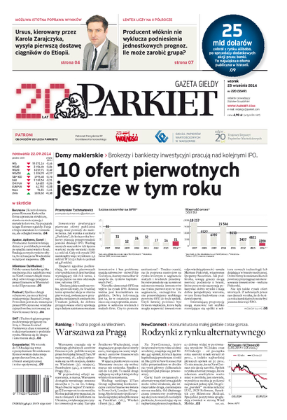 Największy w Polsce newsroom gospodarczy zbiera, analizuje i zgłębia dla Państwa najważniejsze informacje ze świata finansów. Codzienne wydanie „Parkietu”, sześć dni w tygodniu, to kilkadziesiąt artykułów o emitentach, instytucjach finansowych, gospodarce. To również opinie, felietony i wywiady z najważniejszymi ludźmi krajowej i globalnej finansjery.
