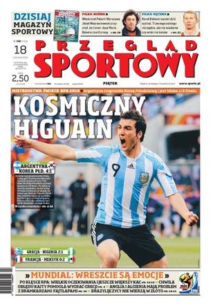 Argentyna rozgromiła Koreę Południową dzięki Gonzalemu Higuain; Jose Maria Bakero porzucił funkcję trenera Polonii Warszawa; Karol Bielecki opuści dziś szpital; Anglia i Algieria mają problem z bramkarzami – fajtłapami.