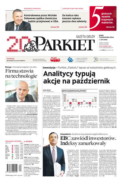 Największy w Polsce newsroom gospodarczy zbiera, analizuje i zgłębia dla Państwa najważniejsze informacje ze świata finansów. Codzienne wydanie „Parkietu”, sześć dni w tygodniu, to kilkadziesiąt artykułów o emitentach, instytucjach finansowych, gospodarce. To również opinie, felietony i wywiady z najważniejszymi ludźmi krajowej i globalnej finansjery.