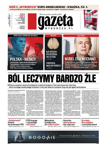 Ból leczymy bardzo źle – polscy pacjenci cierpią bardziej niż w innych krajach, a ból sam może być chorobą, która wymaga skutecznego leczenia – u nas zaś lekarze i pacjenci boją się jak ognia narkotyków; etyka lekarska na krawędzi – lekarz dzień po śmierci Anny Przybylskiej publicznie ujawnia szczegóły jej choroby i opisuje cierpienia aktorki; komisarze po egzaminach – przesłuchania kandydatów do Komisji Europejskiej przypieczętowały wielką koalicję w europarlamencie; mieszkaniowe żniwa – rekordowo niskie stopy procentowe napędzają sprzedaż nowych mieszkań; 10 groszy za kilogram jabłek, sadownicy płaczą – z Grójca i okolic kawalkady tirów ciągnęły na wschód, teraz stoją – pracę tracą kierowcy firm transportowych, pracownicy służb celnych oraz zakładów produkujących opakowania.