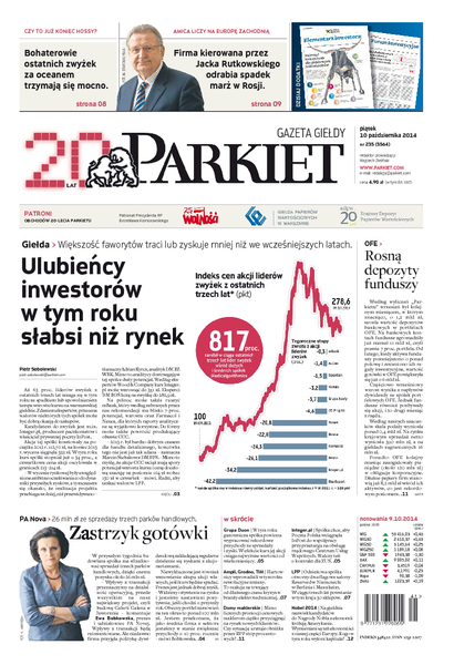 Największy w Polsce newsroom gospodarczy zbiera, analizuje i zgłębia dla Państwa najważniejsze informacje ze świata finansów. Codzienne wydanie „Parkietu”, sześć dni w tygodniu, to kilkadziesiąt artykułów o emitentach, instytucjach finansowych, gospodarce. To również opinie, felietony i wywiady z najważniejszymi ludźmi krajowej i globalnej finansjery.