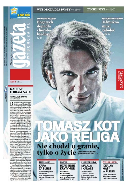Tomasz Kot jako Religa – „Nie chodzi o granie, tylko o życie”; kara za buble – Francuzi chcą karać za umyślne produkowanie rzeczy, które szybko się psują; rząd siebie krytykuje – in vitro tylko dla małżeństw – uważa kancelaria premiera – resorty też niezadowolone; Malala i Kailasz – 17-letnia Malala Yousafzai walczy o prawo do szkoły, Kailasz Satjarthi ocala dzieci; Meksyk w szoku po masakrze – dwa tygodnie po zniknięciu 43 studentów w miejscowości Iguala wstanie Guerrero władze znajdują kolejne zbiorowe groby; dopadła nas choroba biednych – dopóki była szansa, że epidemia się wypali i wygaśnie – jak poprzednie ataki eboli – w Afryce, nikt nie reagował, bo umierali tylko Afrykanie; profesor kopiuj-wklej – jedni są prezesami w marginalnych gremiach, inni mają tatę profesora, jeszcze inni są szefami, więc każdy doktorant uzna ich współautorstwo, w ostateczności można skołować kilka groszy i wydać pół tysiąca stron „zarysu” w półskórku.