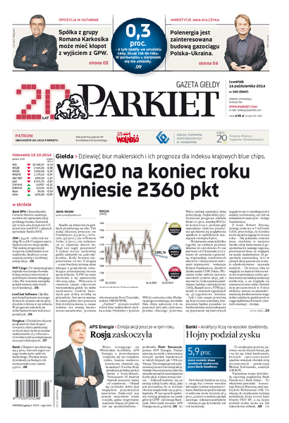 Największy w Polsce newsroom gospodarczy zbiera, analizuje i zgłębia dla Państwa najważniejsze informacje ze świata finansów. Codzienne wydanie „Parkietu”, sześć dni w tygodniu, to kilkadziesiąt artykułów o emitentach, instytucjach finansowych, gospodarce. To również opinie, felietony i wywiady z najważniejszymi ludźmi krajowej i globalnej finansjery.