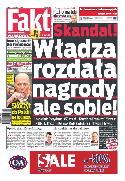 Sejm zakazał przyznawania nagród najwyższym rangą urzędnikom, mimo to władze przyznały sobie łącznie 1,3 mln zł; w Toruniu zawalił się dom w czasie remontu; Polskę odwiedził Bruce Willis by nakręcić film z wódką w roli głównej; Napieralski ujawnia – Platforma lubi nieczystą grę.