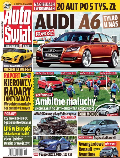 Raport: fotoradary na polskich drogach; następna generacja Audi A6; Skoda Fabia walczy z konkurencją: porównanie czterech aut – Dacia Sandero, Ford Fiesta, Mazda 2, Skoda Fabia; rodzinny van Mazda 5; pikap Volkswagen Amarok; wrażenia z jazdy ORS 250 Zumico; Robert Kubica w Polsce; testy: Audi A8, Peugeot RCZ, Ford S-Max; używane: 21 samochodów za 4-6 tys. zł, Renault Avantime (2001-03); auto-fascynacje: Mercedes SLS AMG E-Cell; porady: OC do kontroli, LPG w Europie, terenowy test nawigacji; prawo: jazda po wypiciu alkoholu.