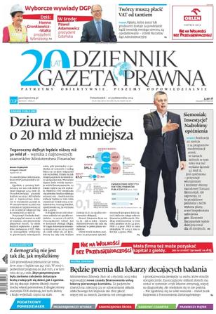 Dziennik Gazeta Prawna – codziennie obiektywne i rzetelne informacje z kraju i ze świata. Piszemy o tym, co dziś ważne i odpowiadamy na Wasze pytania – szczególnie te związane z obecnymi wyzwaniami tj. pandemia, praca zdalna. Na bieżąco wyjaśniamy zmieniające się przepisy. Wspieramy się wyjaśnieniami ministerstw i urzędów. Pomagamy unikać błędów i ostrzegamy, jakie są kary. Ponadto w każdy piątek specjalne magazynowe wydanie Dziennika Gazety Prawnej w całości z tekstami społeczno-ekonomicznymi.