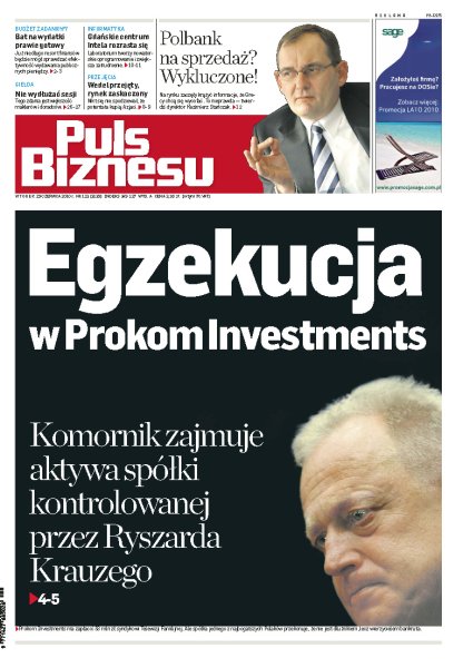Komornik zajmuje aktywa spółki kontrolowanej przez Ryszarda Krauzego; już niedługo resort finansów będzie mógł sprawdzać efektywność wydawania publicznych pieniędzy; gdańskie centrum Intela tworzy nowatorskie oprogramowanie i zwiększa zatrudnienie; japońsko-koreańska Lotte Group kupi słynną polską markę Wedel – takiego finału rywalizacji o przejęcie czekoladowego giganta nikt się nie spodziewał; KNF zamyka sprawę kar za opcje walutowe.