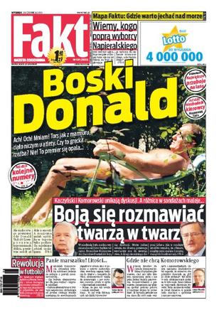 Kaczyński i Komorowski unikają otwartych dyskusji, a różnica w sondażach maleje z dnia na dzień; jak premier Donald Tusk spędza wolny czas; kogo poprą wyborcy Napieralskiego; gdzie warto pojechać nad polskie morze; Zygmunt Chajzer podczas letniego odpoczynku; mąż Maryli Rodowicz nie chce, aby jego żona schudła; czy FIFA zdecyduje się na zmiany przepisów dotyczących sędziowania spotkań piłkarskich; czy Portugalia pod wodzą Ronaldo jest w stanie pokonać Hiszpanię.