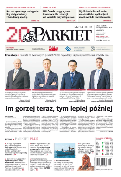 Największy w Polsce newsroom gospodarczy zbiera, analizuje i zgłębia dla Państwa najważniejsze informacje ze świata finansów. Codzienne wydanie „Parkietu”, sześć dni w tygodniu, to kilkadziesiąt artykułów o emitentach, instytucjach finansowych, gospodarce. To również opinie, felietony i wywiady z najważniejszymi ludźmi krajowej i globalnej finansjery.