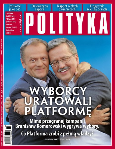 Wyborcy uratowali Platformę Obywatelską, mimo przegranej kampanii Bronisław Komorowski pokonał Jarosława Kaczyńskiego w wyborach prezydenckich; jak będzie wyglądała Polska pod władzą PO; rozmowa z prof. Januszem Czapińskim, psychologiem społecznym, o tryumfie Polski konserwatywnej; na fali uczuć po katastrofie w Smoleńsku przed Pałacem Prezydenckim postawiono krzyż, który stał się wzorem dla innych inicjatyw dzielących Polaków na prawych i lewych; Ewa Kopacz uchodzi za najtwardszą osobę w rządzie, ale widać, że jest bardzo emocjonalna; czy zwierzęta są wrogiem człowieka; wzbiera fala bankructw firm deweloperskich; wędrówka szlakiem nadbałtyckich fortyfikacji z XIX i XX wieku.