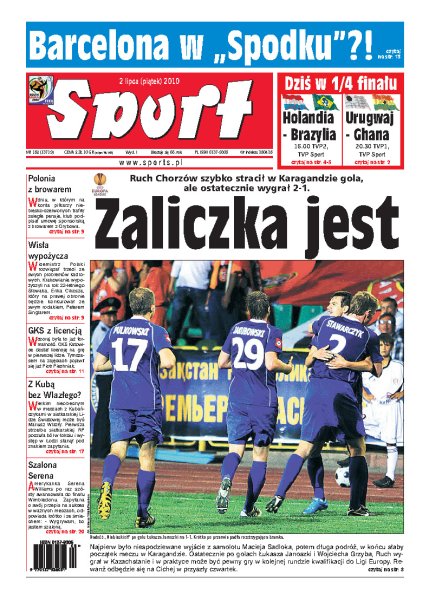 Już dziś poznamy pierwszych półfinalistów mistrzostw świata w piłce nożnej; czy Holandia pokona w końcu fantastyczną Brazylię; w sobotę rozpoczyna się 97. edycja kolarskiego Wyścigu Dookoła Francji; wywiad z Anetą Florczak, najsilniejszą kobietą świata; Mariusz Wlazły, jeden z najlepszych polskich siatkarzy może być wielkim nieobecnym w dwumeczu z Kubańczykami; Serena Williams po raz szósty awansowała do finału Wimbledonu.