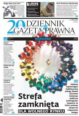W życie weszło prawo, zgodnie z którym już nie tylko cena ma być kryterium rozstrzygania przetargów - tyle że latami będziemy płacić za zamówienia, które wybierano po taniości; w Sochaczewie jak w soczewce skupiły się problemy małych miast, gdzie bezrobocie jest duże, każda praca nie do przecenienia, a o wielu posadach decydują lokalni włodarze; enklawy zapewniające stabilną pracę znikają - nawet szacowne instytucje publiczne przestają być wyspami, na które rynkowe okręty nie mają prawa wstępu; nadchodzący weekend będzie jednym z najważniejszych w tym roku dla europejskich banków - na niedzielę zapowiedziano publikację wyników przeglądu jakości aktywów i stress testów unijnych instytucji kredytowych. Dodatki: Gazeta Prawna, Prawnik, Liderzy innowacyjności, Prawo na co dzień, Kultura i program TV.