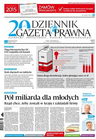 Dziennik Gazeta Prawna – codziennie obiektywne i rzetelne informacje z kraju i ze świata. Piszemy o tym, co dziś ważne i odpowiadamy na Wasze pytania – szczególnie te związane z obecnymi wyzwaniami tj. pandemia, praca zdalna. Na bieżąco wyjaśniamy zmieniające się przepisy. Wspieramy się wyjaśnieniami ministerstw i urzędów. Pomagamy unikać błędów i ostrzegamy, jakie są kary. Ponadto w każdy piątek specjalne magazynowe wydanie Dziennika Gazety Prawnej w całości z tekstami społeczno-ekonomicznymi.