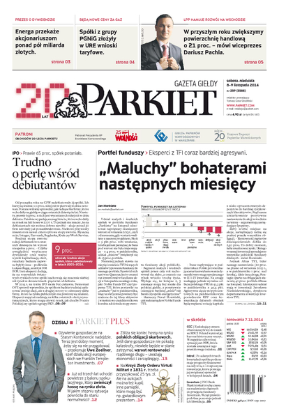 Największy w Polsce newsroom gospodarczy zbiera, analizuje i zgłębia dla Państwa najważniejsze informacje ze świata finansów. Codzienne wydanie „Parkietu”, sześć dni w tygodniu, to kilkadziesiąt artykułów o emitentach, instytucjach finansowych, gospodarce. To również opinie, felietony i wywiady z najważniejszymi ludźmi krajowej i globalnej finansjery.
