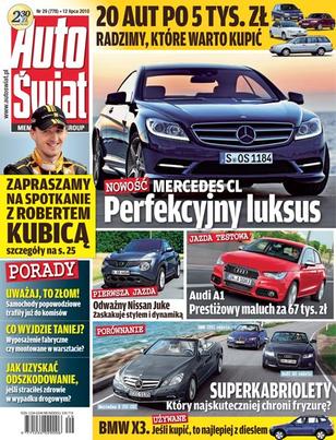 Mercedes CL – modernizacja luksusowego coupé; Volvo V60 to nowe kombi klasy średniej; wrażenia z pierwszej jazdy Nissanem Juke; Renault Wind – kabriolecik z Francji; Audi A1: prestiżowy maluch; porównanie kabrioletów klasy premium: Mercedes klasy E kontra BMW serii 3 i Audi A5; testy: Skoda Superb w kosztownej wersji, Lancia Delta z nowym mocnym dieslem, motocykl Suzuki GSX 1250FA, Dacia Duster – rumuński SUV, Mazda 2 – miejski wariant sportowy; przed nami spotkanie z Robertem Kubicą na torze w Poznaniu; używane: 21 samochodów za 4-6 tys. zł – cz. II, BMW X3; auto-fascynacje: quady; porady: uwaga na samochody popowodziowe, jakie wyposażenie dodatkowe jest tańsze: fabryczne czy montowane w warsztacie, jak uzyskać odszkodowanie za utratę zdrowia w wypadku drogowym, co oznacza samochód bez prawa do rejestracji, ekoopony: czym są i jakie korzyści daje ich założenie.