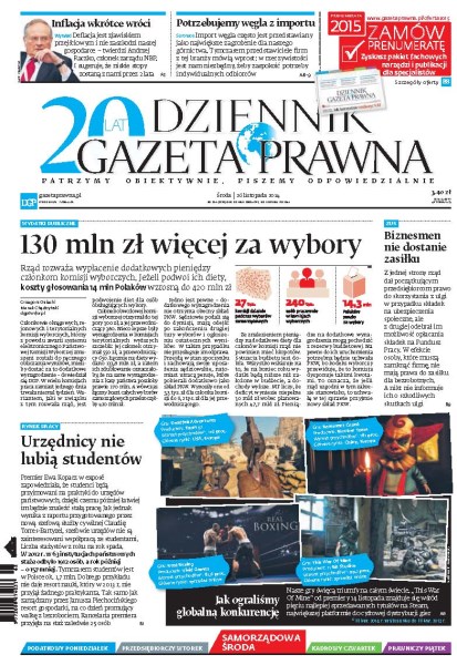 Dziennik Gazeta Prawna – codziennie obiektywne i rzetelne informacje z kraju i ze świata. Piszemy o tym, co dziś ważne i odpowiadamy na Wasze pytania – szczególnie te związane z obecnymi wyzwaniami tj. pandemia, praca zdalna. Na bieżąco wyjaśniamy zmieniające się przepisy. Wspieramy się wyjaśnieniami ministerstw i urzędów. Pomagamy unikać błędów i ostrzegamy, jakie są kary. Ponadto w każdy piątek specjalne magazynowe wydanie Dziennika Gazety Prawnej w całości z tekstami społeczno-ekonomicznymi.