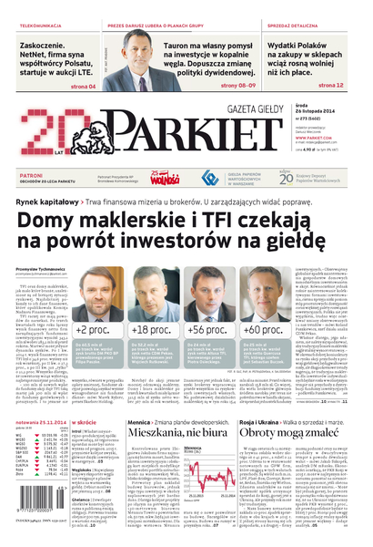 Największy w Polsce newsroom gospodarczy zbiera, analizuje i zgłębia dla Państwa najważniejsze informacje ze świata finansów. Codzienne wydanie „Parkietu”, sześć dni w tygodniu, to kilkadziesiąt artykułów o emitentach, instytucjach finansowych, gospodarce. To również opinie, felietony i wywiady z najważniejszymi ludźmi krajowej i globalnej finansjery.