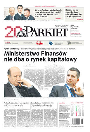 Największy w Polsce newsroom gospodarczy zbiera, analizuje i zgłębia dla Państwa najważniejsze informacje ze świata finansów. Codzienne wydanie „Parkietu”, sześć dni w tygodniu, to kilkadziesiąt artykułów o emitentach, instytucjach finansowych, gospodarce. To również opinie, felietony i wywiady z najważniejszymi ludźmi krajowej i globalnej finansjery.