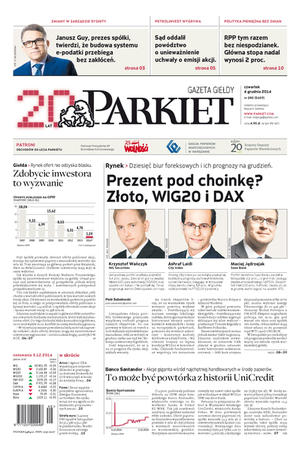Największy w Polsce newsroom gospodarczy zbiera, analizuje i zgłębia dla Państwa najważniejsze informacje ze świata finansów. Codzienne wydanie „Parkietu”, sześć dni w tygodniu, to kilkadziesiąt artykułów o emitentach, instytucjach finansowych, gospodarce. To również opinie, felietony i wywiady z najważniejszymi ludźmi krajowej i globalnej finansjery.