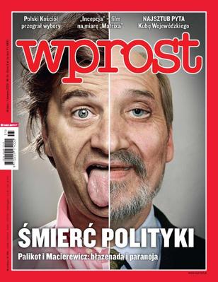 Już nawet zwolennicy Kościoła uważają, że jego wpływ na państwo jest zbyt duży; Jarosław Marek Rymkiewicz skończył niedawno 75 lat i znów przypomniał o swoim temperamencie; trendy kolorystyczne w aranżacji wnętrz zmieniają się co roku, skąd więc wiadomo, jakie kolory będą modne w danym sezonie; maczeta stała się w Polsce bronią kiboli; Hugh Hefner ma 83 lata i walczy o swoje imperium; fiasko francuskiego modelu integracji imigrantów jest oczywiste – podpalacze aut nauczyli się, że być silnym, to znaczy umieć szkodzić; rozpada się koalicja walcząca z terrorystami w Afganistanie; jeśli Empik przejmie internetową księgarnię Merlin.pl, to na naszym rynku powstanie nowy, potężny sklep internetowy, który będzie mógł dyktować warunki wydawcom oraz czytelnikom.