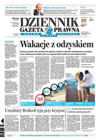 Zamiast się sądzić, biura podróży wolą uzgodnić z klientami wysokość odszkodowania za nieudany urlop, podstawą porozumienia jest coraz częściej tabela frankfurcka zwana biblią turystów; jakie warunki trzeba spełnić, by można stać się zawodową rodziną zastępczą; we wrześniu rząd ma przyjąć projekt ustawy o rentach kapitałowych, ich wysokość będzie zależała od składek; jak uniknąć odrzucenia odwołania w zamówieniach publicznych; prokurator przyjrzy się starym spółkom handlowym; nowa ustawa powinna usprawnić inwestycje w telekomunikacji oraz sprzyjać rozwojowi konkurencji na rynku.