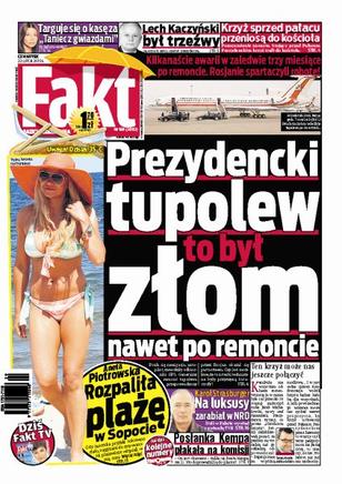 Jak powinniśmy ocenić zmiany w zachowaniu Jarosława Kaczyńskiego tuż po wyborach prezydenckich; Tu-154, który rozbił się pod Smoleńskiem, był przestarzałym wrakiem; Aleksander Kwaśniewski zabiera Ryszarda Kalisza na wczasy pod gruszą; Beata Kempa po kłótni z szefem komisji hazardowej rozpłakała się i nie mogła mówić; Edyta Górniak targuje się o wynagrodzenie za „Taniec z gwiazdami”; wywiad z Karolem Strasburgerem.