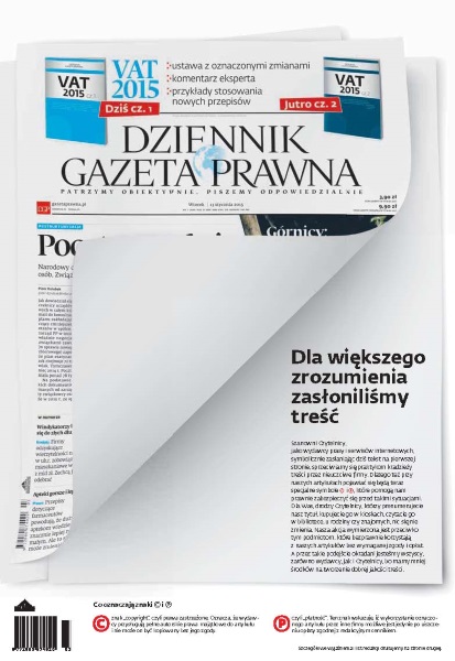 Dziennik Gazeta Prawna – codziennie obiektywne i rzetelne informacje z kraju i ze świata. Piszemy o tym, co dziś ważne i odpowiadamy na Wasze pytania – szczególnie te związane z obecnymi wyzwaniami tj. pandemia, praca zdalna. Na bieżąco wyjaśniamy zmieniające się przepisy. Wspieramy się wyjaśnieniami ministerstw i urzędów. Pomagamy unikać błędów i ostrzegamy, jakie są kary. Ponadto w każdy piątek specjalne magazynowe wydanie Dziennika Gazety Prawnej w całości z tekstami społeczno-ekonomicznymi.