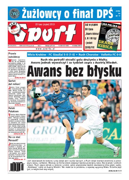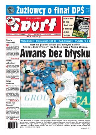 Ruch Chorzów nie potrafił strzelić gola przeciwnikowi z Malty, wywalczył jednak awans i za tydzień zagra z Austrią Wiedeń; Wisła Kraków pokonała FC Siauliai 5:0; Marcin Gortat wsparł ŁKS Łódź milionem złotych; Jose Mourinho przejął stery w Madrycie i jasno daje do zrozumienia, kto tam rządzi; wywiad z Sebastianem Świderskim; jeśli nie zdarzy się coś nadzwyczajnego, to Roberta Kubicę będzie czekało w Niemczech bardzo trudne zadanie.