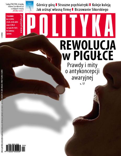 Rewolucja w pigułce: prawdy i mity o antykoncepcji awaryjnej; górnicy górą: kto połamie sobie zęby na węglu; straszne szpitale psychiatryczne; firmowe przekręty – czyli jak naciągnąć pracodawcę; Sikorski mocny i słaby; rozmowa z Marianem Turskim, byłym więźniem Auschwitz, z okazji 70 rocznicy wyzwolenia obozu; rozmowa z Piotrem Ibrahimem Kalwasem o arabskich echach zamachu w Paryżu; kulisy afery „Olin”; polskie absurdy kolejowe; jak sto złotych zamieniło się w jeden grosz – minęło 20 lat od denominacji; Fidel – legenda karaibskiego Don Kichota; Gala Paszportów POLITYKI: mocne pytania i deklaracje.