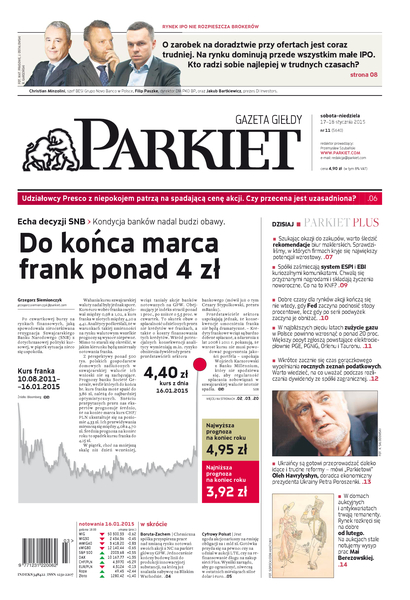 Największy w Polsce newsroom gospodarczy zbiera, analizuje i zgłębia dla Państwa najważniejsze informacje ze świata finansów. Codzienne wydanie „Parkietu”, sześć dni w tygodniu, to kilkadziesiąt artykułów o emitentach, instytucjach finansowych, gospodarce. To również opinie, felietony i wywiady z najważniejszymi ludźmi krajowej i globalnej finansjery.