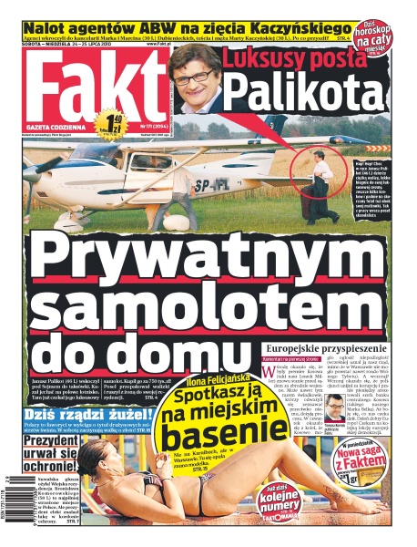 Janusz Palikot załatwia sprawy latając do stolicy swoim luksusowym samolotem; agenci ABW wkroczyli do kancelarii teścia i męża Marty Kaczyńskiej; rodziny ofiar smoleńskiej katastrofy z płaczem opowiadały wczoraj w Sejmie, co spotkało je w Moskwie; sezonowe obniżki cen okazują się tylko pułapką zastawioną na klientów; polscy żużlowcy rozpoczynają walkę o tytuł drużynowych mistrzów świata.