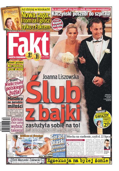 Twórcy kampanii prezydenckiej Kaczyńskiego poszli w odstawkę; państwo Rokitowie spędzili wymarzony urlop na wyspie Rodos; 19 godzin jechali z Kołobrzegu do Lublina – przeżyli koszmar w pociągu; Joasia Liszowska długo czekała na ten moment – w sobotę została żoną milionera; Janusz Józefowicz puścił Nataszę Urbańską samą do USA; Edyta Górniak w „Tańcu z Gwiazdami” sama wybierze sobie partnera; Marcin Wasilewski musiał się poddać szóstej operacji złamanej nogi; żużlowcy podczas półfinału Drużynowego Pucharu Świata zdeklasowali rywali; tragiczny finał Parady Miłości w Niemczech.