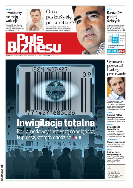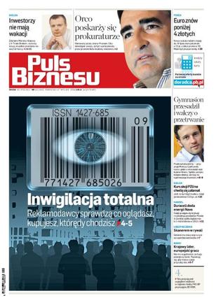 Centrum Monitorowania Rynku szykuje rewolucję w badaniach; plany sprzedaży udziałów w największych firmach zza wschodniej granicy nie zagrożą polskiej prywatyzacji; po przejęciu BZ WBK bank PKO BP stanie się zdecydowanym numerem 1 w kraju; spółka z grupy Orlenu inwestuje w kawerny na ropę i paliwa; dotknięte kryzysem koncerny motoryzacyjne znów inwestują; tyska grupa handlowa Novo rozwija skrzydła, właśnie dobiła targu z koncernem Procter & Gamble; już prawie 28 proc. wydatków na promocję online to marketing; stołeczna firma Ele Taxi proponuje taksówki multimedialne; od początku lipca euro potaniało o 15 groszy, a dolar prawie 30 groszy.