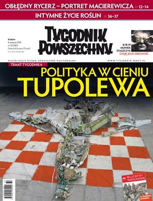Temat Tygodnika – polityka w cieniu Tupolewa: kres polskiej polityki, zbiorowy portret „Ruchu 10 kwietnia”, śledztwo w sprawie smoleńskiej katastrofy widziane z Moskwy; w jakim kierunku zmierza PO; odważny i bezkompromisowy człowiek zasad czy radykał ogarnięty obsesją i oderwany od rzeczywistości – portret Antoniego Macierewicza; rozmowa z Muńkiem Staszczykiem o rodzicach, Bogu, modlitwie i życiowym zamęcie; WikiLeaks: strona internetowa walcząca z rządami; stróże prawa ponad prawem, czyli obraz rosyjskich milicjantów; Haiti – Caritas wobec fiaska światowej pomocy; rozmowa z Jasiem Gawrońskim, włoskim dziennikarzem i parlamentarzystą, współpracownikiem i doradcą Berlusconiego; jak flora radzi sobie z nadmiarem pochłoniętego światła, czyli o inteligencji i uczeniu się roślin; dodatek specjalny „90 lat Bitwy Warszawskiej” (m.in. czy tej wojny można było uniknąć, czy wykorzystaliśmy zwycięstwo, jakim wodzem naczelnym był Józef Piłsudski, historia alternatywna: powstaje polska republika rad i bolszewizm wlewa się do Europy).