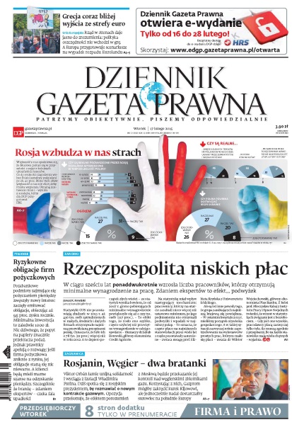 Dziennik Gazeta Prawna – codziennie obiektywne i rzetelne informacje z kraju i ze świata. Piszemy o tym, co dziś ważne i odpowiadamy na Wasze pytania – szczególnie te związane z obecnymi wyzwaniami tj. pandemia, praca zdalna. Na bieżąco wyjaśniamy zmieniające się przepisy. Wspieramy się wyjaśnieniami ministerstw i urzędów. Pomagamy unikać błędów i ostrzegamy, jakie są kary. Ponadto w każdy piątek specjalne magazynowe wydanie Dziennika Gazety Prawnej w całości z tekstami społeczno-ekonomicznymi.