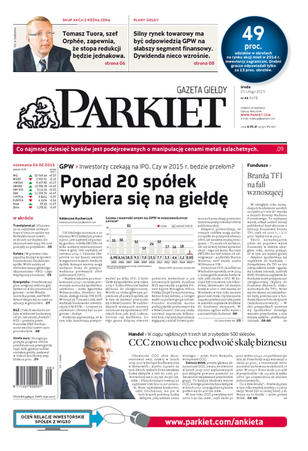 Największy w Polsce newsroom gospodarczy zbiera, analizuje i zgłębia dla Państwa najważniejsze informacje ze świata finansów. Codzienne wydanie „Parkietu”, sześć dni w tygodniu, to kilkadziesiąt artykułów o emitentach, instytucjach finansowych, gospodarce. To również opinie, felietony i wywiady z najważniejszymi ludźmi krajowej i globalnej finansjery.