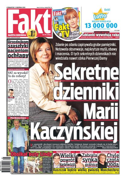 Ministerstwo Zdrowia dba o swoich pracowników, a o pacjentach zupełnie zapomniało; Donald Tusk jeździ limuzyną w krótkich spodenkach; sekretne pamiętniki Marii Kaczyńskiej – o istnieniu wspomnień nie wiedziała nawet jej córka; potworna maszyna wciągnęła biednego rolnika; pani Zofia oglądała swój ulubiony serial, gdy jej parterowy dom zatrząsł się w posadach; Tomasz Kammel wraca do telewizji; niesforny pies Borysa Szyca nasikał na buty Bogusława Lindy; co się dzieje z Lechem Poznań – Mistrz Polski w kiepskim stylu przegrał także drugi mecz ze Spartą; piłkarze Białej Gwiazdy krytykują trenera, że źle ich przygotował do sezonu.