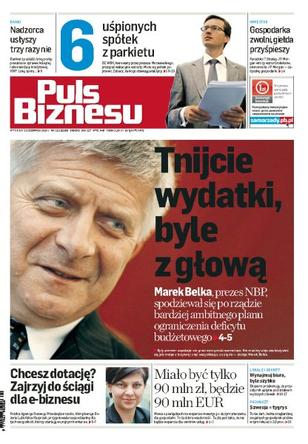 Marek Belka, prezes NBP, spodziewał się po rządzie bardziej ambitnego planu ograniczenia deficytu budżetowego; bankierzy ustalili linię postępowania w sprawie następnej rekomendacji kredytowej KNF; BZ WBK, kierowany przez prezesa Morawieckiego, przespał wakacyjne wzrosty; resort gospodarki nie ogłosi kolejnego konkursu na inwestycje w centra usług; Szwecja może zostać nowym gospodarczym tygrysem Europy.