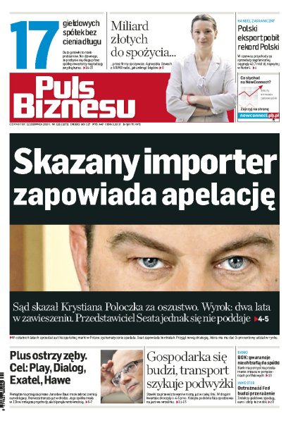 Krystian Poloczek, przedstawiciel Seata został skazany na dwa lata więzienia w zawieszeniu na pięć lat; czerwiec był najlepszym miesiącem w historii dla polskiej sprzedaży za granicą; Plus nie wyklucza przejęcia Exatela, Dialogu lub Playa; rusza nowe rozdanie funduszy unijnych na inwestycje; coraz większa fala spadkowa na rynkach akcji; ostrożna polityka Fed wystraszyła inwestorów.