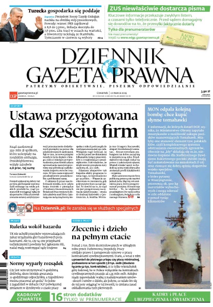 Dziennik Gazeta Prawna – codziennie obiektywne i rzetelne informacje z kraju i ze świata. Piszemy o tym, co dziś ważne i odpowiadamy na Wasze pytania – szczególnie te związane z obecnymi wyzwaniami tj. pandemia, praca zdalna. Na bieżąco wyjaśniamy zmieniające się przepisy. Wspieramy się wyjaśnieniami ministerstw i urzędów. Pomagamy unikać błędów i ostrzegamy, jakie są kary. Ponadto w każdy piątek specjalne magazynowe wydanie Dziennika Gazety Prawnej w całości z tekstami społeczno-ekonomicznymi.